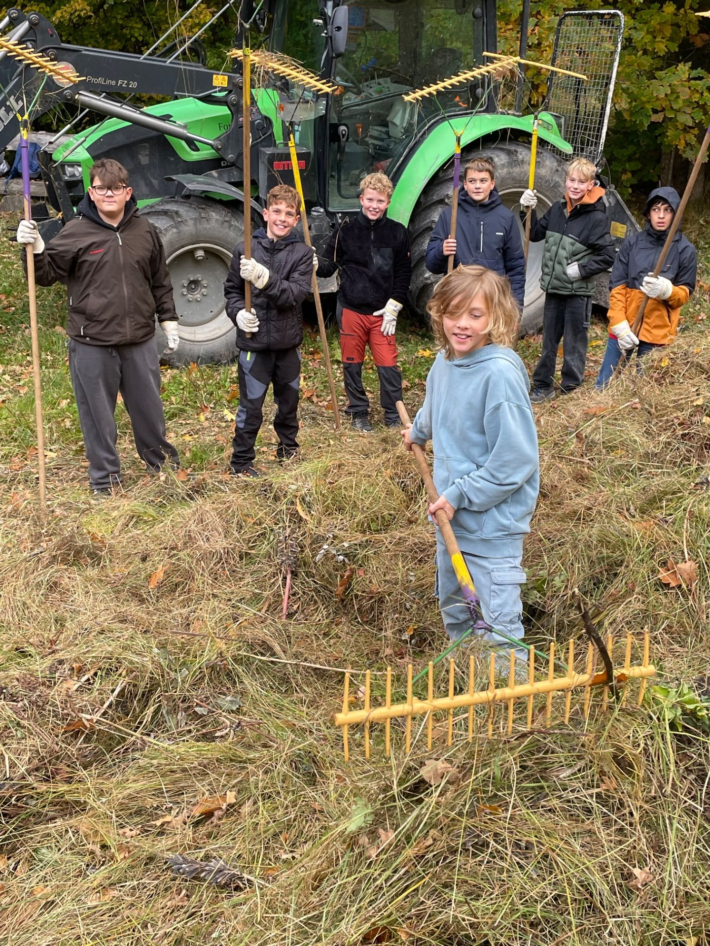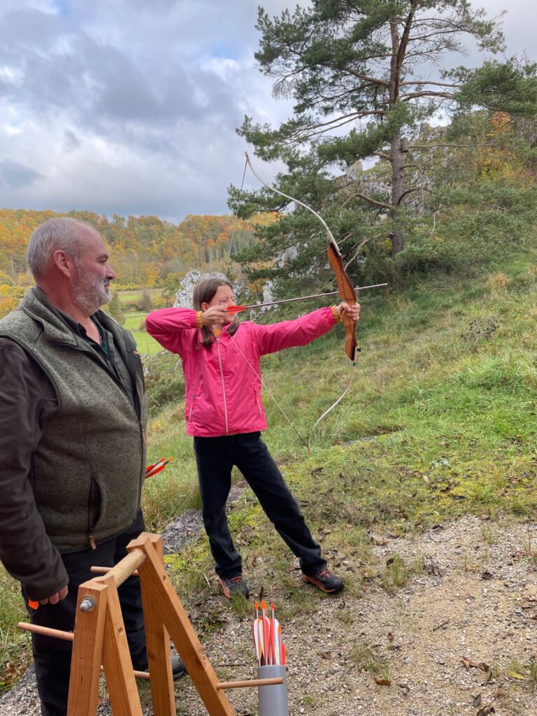 An einem Vormittag war Muskelkraft gefragt: gemeinsam mit den Forst- und Waldarbeitern wurde der Hohmichele, ein Keltengrabhügel mitten im Wald bei Altheim, abgerecht. Alle Kinder wurden mit Rechen und Gabeln ausgestattet und haben tatkräftig mit angepackt. Da sind alle mächtig ins Schwitzen gekommen. Aber die Kinder hatten gerade noch genug Puste für das anschließenden „Capture the Flag“-Spiel.