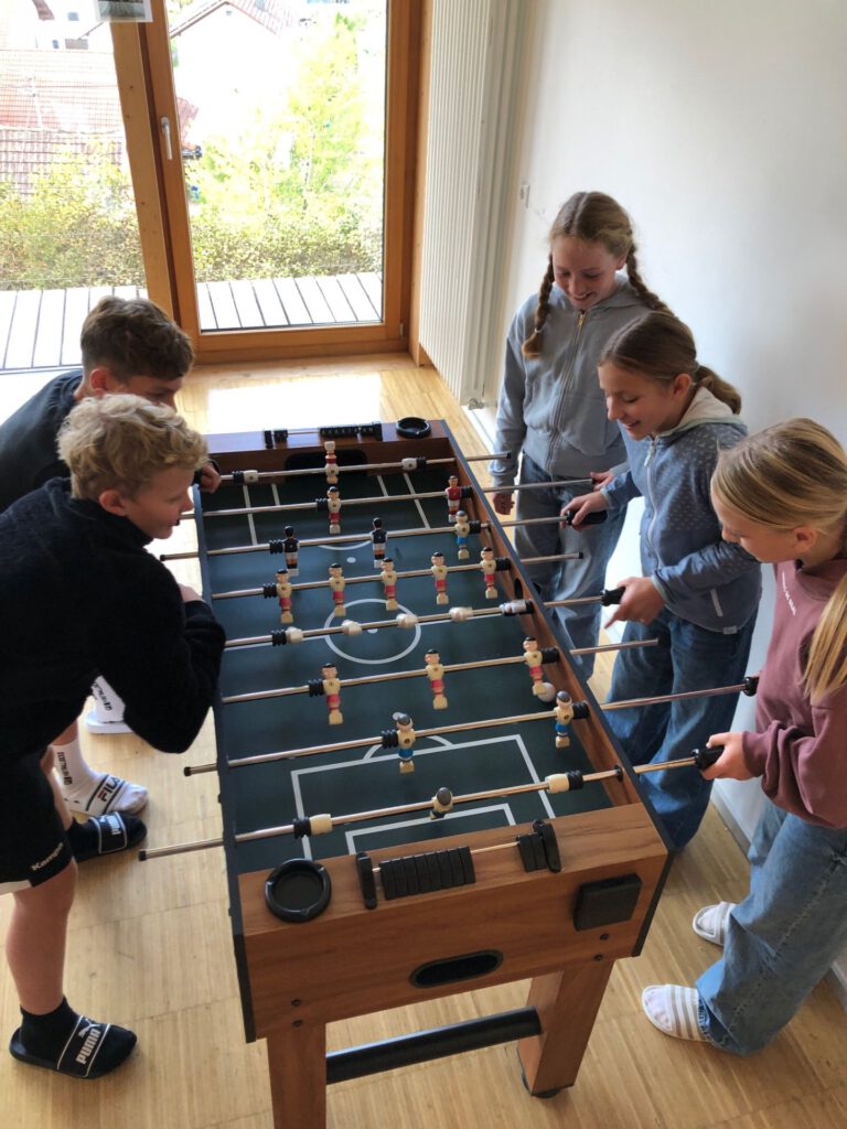 Natürlich kam auch der Spaß nicht zu kurz: Ob beim gemeinsamen Spielen, beim Basteln, beim Toben in der Turnhalle oder beim gemütlichen Zusammensein – die Gemeinschaft wuchs von Tag zu Tag. Teamfähigkeit war auch beim spannenden Zombie-Escape-Room gefragt. Knifflige Rätsel mussten gemeinsam gelöst und anspruchsvolle Sport-Challenges konnten nur im Team gemeistert werden. Bei diesem Spiel konnten wirklich alle zeigen, was in ihnen steckt. Glücklicherweise konnte das Gegenmittel gefunden werden und die Lehrer wurden gerettet😉.