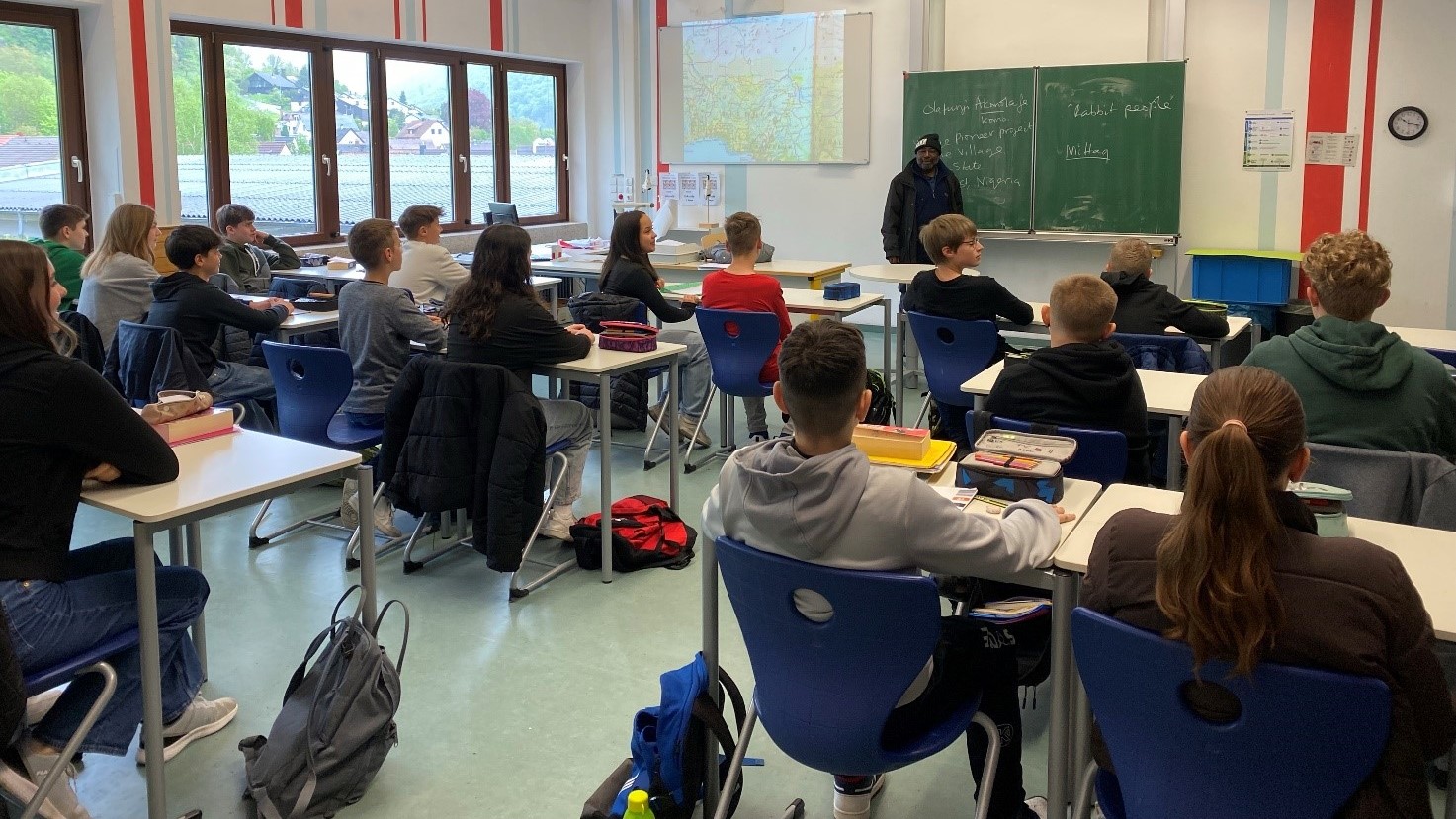 Am 11. Mai 2023 besuchte uns (die Klassen 8a und 8b) Olatunji „Komo“ Akomolafe vom Village Pioneer Project (VPP) in Nigeria.