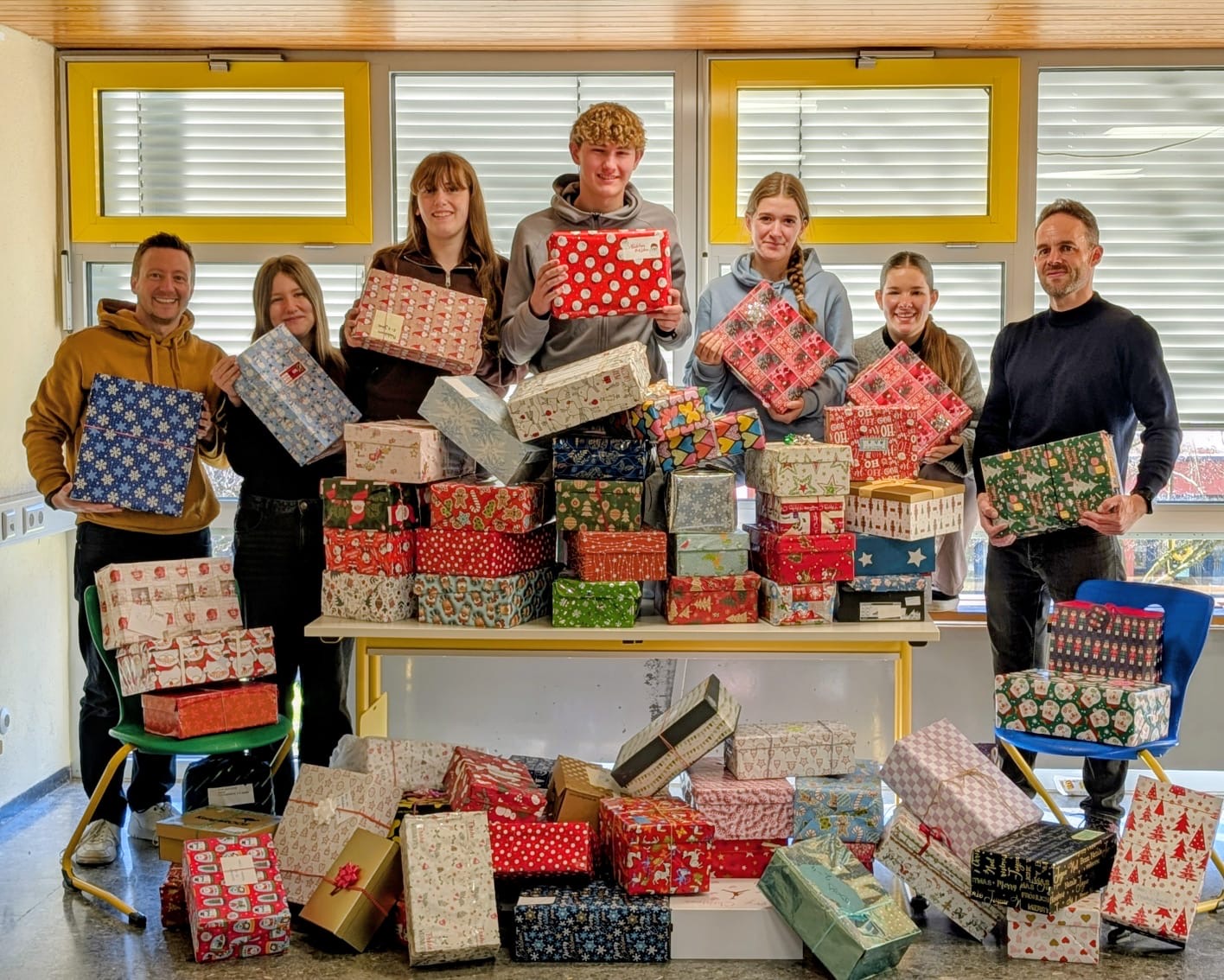 Die SMV der Karl-Erhard-Scheufelen Realschule Lenningen hat innerhalb kürzester Zeit eine beeindruckende Weihnachtsaktion auf die Beine gestellt: Weihnachten im Schuhkarton. Gemeinsam rief die SMV Eltern und Schülerinnen und Schüler dazu auf, weihnachtlich dekorierte Geschenkboxen für Kinder in Not zu packen – jeweils passend zu den drei Altersklassen 2–4 Jahre, 5–9 Jahre und 10–14 Jahre. Die Resonanz war überwältigend: Über 80 liebevoll gestaltete Schuhkartons wurden abgegeben – jede Box gefüllt mit Spielzeug, Kleidung, Hygieneartikeln und kleinen Überraschungen. Viele Familien gaben sich besonders viel Mühe beim Verzieren, sodass jede Geschenkbox ein individuelles kleines Kunstwerk wurde. Am Dienstag, den 18.11. übergab die SMV stolz die Schuhkartons an Familie Lustig in Owen, die die Aktion für ihre Gemeinde koordiniert und der SMV eine Zusammenarbeit ermöglicht hatte. Die SMV zeigt sich begeistert vom Engagement der Schulgemeinschaft: „Ein riesiges Dankeschön an alle Eltern und Schüler, die mitgemacht haben. Ihr habt dazu beigetragen, Kindern in anderen Ländern ein strahlendes Weihnachtsfest zu bereiten.“ Eine Aktion, die einmal mehr zeigt, wie stark der Zusammenhalt an der Realschule Lenningen ist.