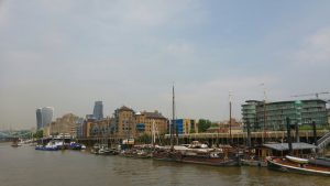en wir morgens um halb 11 Uhr Richtung Londoner Innenstadt ein. Auch das Wetter spielte mit und bescherte uns eine wundervolle Fahrt auf der Themse. Wir fuhren an vielen Touristenbooten und sogar einem Militärsschiff vorbei. Auch zahlreiche Hochhäuser, die sehr viele verschiedene Formen hatten, konnten wir vom Boot aus bewundern.